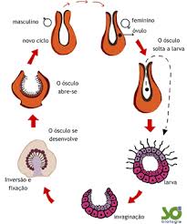 feminino. Forma-se uma larva que sai pelo ósculo e sofre invaginação até fixar
